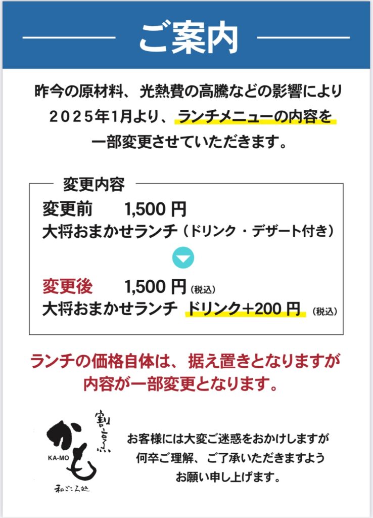 ランチメニューの内容を一部変更させていただきます。